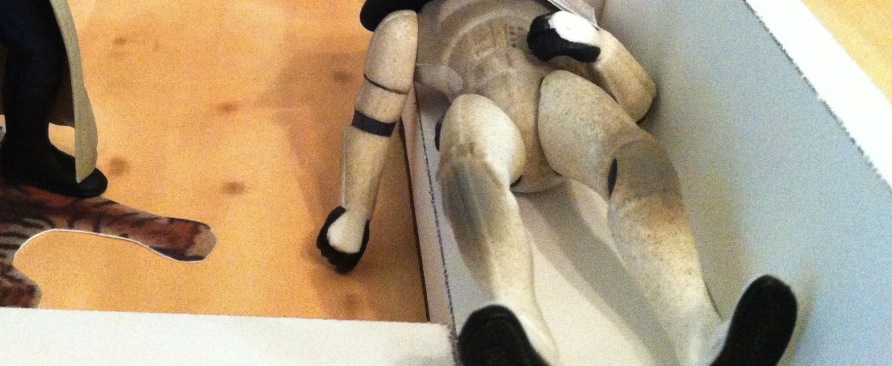 It’s gonna be a few months until the book hits the shelves (for paper and e-versions) so in the mean time, you might want to check out a new blog my girlfriend Angie and I created. It’s called Tatooweenies, and it involves us shooting photos of really cheap Star Wars action figures in front of even cheaper props and sets made of paper and cardboard. It’s all very goofy but a lot of fun. Consider the photo above a preview of coming attractions.