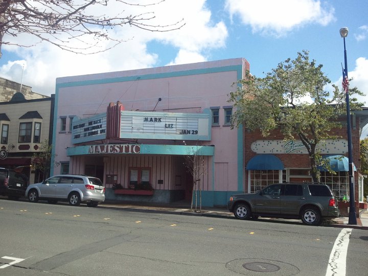 Benicia seems proud of its history, the well-maintained buildings as well as the detritus. Indeed, Angela found the rusting crane and half-sunk barges on the waterfront more photo-worthy than the capitol building. And the old Southern Pacific railroad depot makes a fine modern visitor’s center, even if the associated tracks that used to run out to a ferry now simply jut out into the bay. According to a photocopied handbill that I picked up at the capitol building, Benicia is a place of firsts. California’s first chamber of commerce was here, as well as its first Protestant church, public school, girl’s school, cast bell, newspaper (the Californian, first published on August 15, 1846), and Anglo cemetery. It was also a place of romance, being the site of the first truly legendary California love affair, between Concepcion Arguello and Nikolai Rezanov. (It didn’t work out, though apparently not because he was forty-two and she was only fifteen.) In any case, Angela and I tested Benicia’s modern capability by making out in the old capitol building’s empty assembly gallery, and found it very much alive.